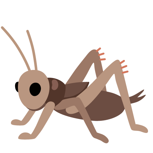 A cricket, a hopping insect that makes a chirping sound. Depicted as a brown or green cricket in full profile on its six legs facing left, with long antennae and large, bent back legs. May resemble or be used to represent a grasshopper (including locusts) and other bugs. May also be used to represent metaphorical crickets, or "silence," as of a disapproving or uninterested audience. Not to be confused with 🏏 Cricket Game, the sport. Google's cricket was previously green.