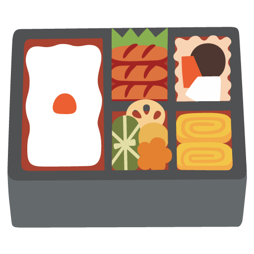 The bento box emoji represents a Japanese lunch box containing various food items.