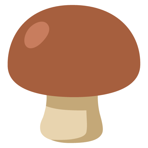 The edible fungus of the mushroom, depicted as a toadstool with a brown cap and stem. Can be used to represent culinary mushrooms, such as cremini, shiitake, or portobello. Distinct from the π Mushroom emoji, which features the red cap and white spots that tend to be indicative of various poisonous fungi. The Brown Mushroom emoji is a ZWJ sequence combining π Mushroom, Zero Width Joiner and π« Brown Square. These display as a single emoji on supported platforms.