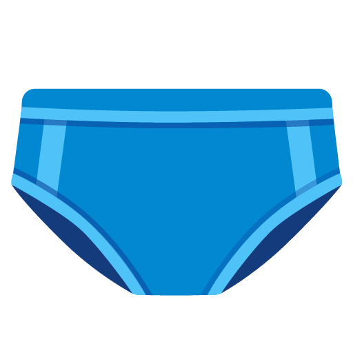 Underwear or swim briefs. The swimming variety are often called 'Speedos' after the brand. This emoji is shown in different colors and styles across platforms. Some platforms depict this emoji as tighty whities with a visible fly, while others use a less specific design. Related emojis include 👙 Bikini, 🩳 Shorts, and 🩱 One-Piece Swimsuit.