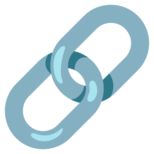Two links of a silver chain, positioned at a 45° angle. Used as an icon for a hyperlink on computers and the internet. May also be used for metaphorical connections. Not to be confused with ⛓️Chains, 📎 Paperclip, 🖇️ Linked Paperclips, or 🧷 Safety Pin.
