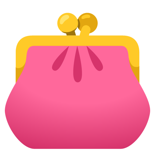 A small pouch with a clasp, generally used to hold coins. Sometimes called a “coin purse.” Color varies by platform, though most platforms have a pink, blue, or turquoise bag with a silver or gold (gray or yellow) clasp. Not to be confused with 👝 Clutch Bag, which can look like a coin person on some platforms, due to lack of relative scale in emoji designs.