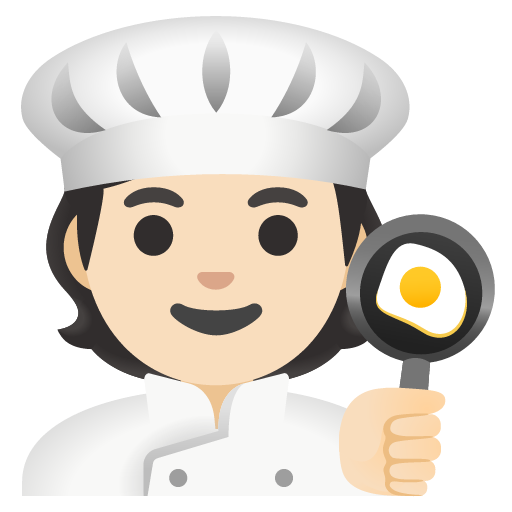 Download the cook: light skin tone emoji in PNG and SVG formats below, or copy the emoji to your clipboard.