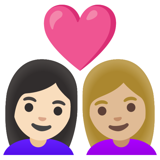 Download the couple with heart: woman, woman, light skin tone, medium-light skin tone emoji in PNG and SVG formats below, or copy the emoji to your clipboard.