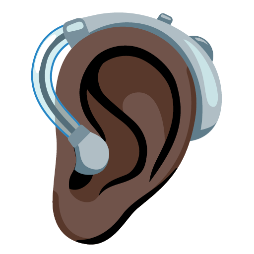 The above meaning was generated by artificial intelligence. It may contain errors or inaccuracies, or be entirely untrue.Copy the ear with hearing aid: dark skin tone emoji