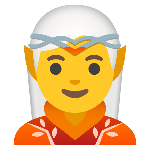 A mythical creature with pointed ears and a human-like face, originating in folklore. While depictions of elves vary across cultures and traditions, this emoji's design is heavily influenced by the portrayal of elves popularized in modern high fantasy literature, particularly The Lord of the Rings. As such, most vendors display the creature wearing elegant robes and often wearing an ornate headpiece. Even still, this emoji may be used to discuss Santa's helpers, especially around Christmas.