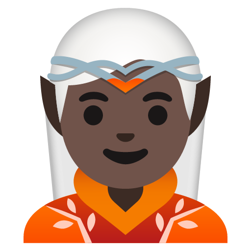 The elf: dark skin tone emoji represents a magical creature with dark skin.