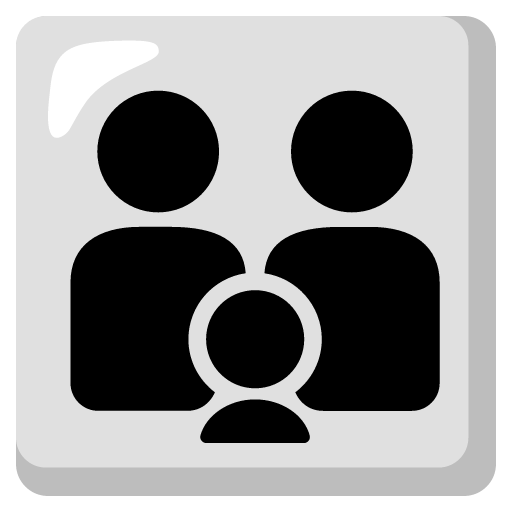 A family unit shown with two adults and one child. Usually depicted as a collection of silhouettes on a block color background, as per Unicode's recommendations. The Family: Adult, Adult, Child emoji is a ZWJ sequence combining 🧑 Person, Zero Width Joiner and 🧒 Child. These display as a single emoji on supported platforms.