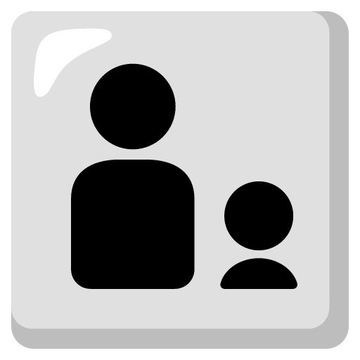 A family unit shown with one adult and one child. Usually depicted as a collection of silhouettes on a block color background, as per Unicode's recommendations. The Family: Adult, Child emoji is a ZWJ sequence combining 🧑 Person, Zero Width Joiner and 🧒 Child. These display as a single emoji on supported platforms.