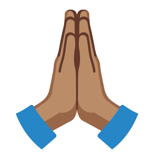 You can add the folded hands: medium skin tone emoji to your website in a few ways. The first way is by using the unicode character, the emoji itself. This has the advantage of rendering immediately and it doesn't require any additional network requests. However, emoji characters don't always scale well and they are inconsistent across platforms.