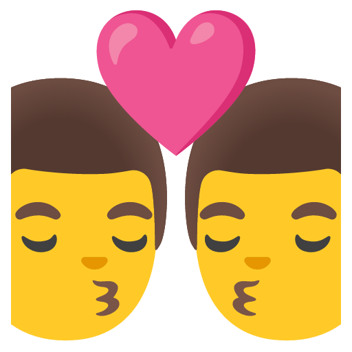 Two men displayed kissing, or gesturing a kiss toward each other. At small sizes this may be difficult to discern from the two women kissing. The Kiss: Man, Man emoji is a ZWJ sequence combining 👨 Man, Zero Width Joiner, ❤️ Red Heart and 💋 Kiss Mark. These display as a single emoji on supported platforms.
