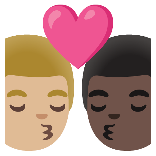 You can add the kiss: man, man, medium-light skin tone, dark skin tone emoji to your website in a few ways. The first way is by using the unicode character, the emoji itself. This has the advantage of rendering immediately and it doesn't require any additional network requests. However, emoji characters don't always scale well and they are inconsistent across platforms.
