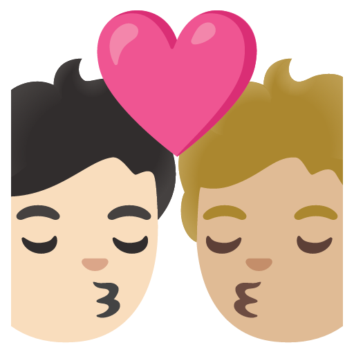 You can add the kiss: person, person, light skin tone, medium-light skin tone emoji to your website in a few ways. The first way is by using the unicode character, the emoji itself. This has the advantage of rendering immediately and it doesn't require any additional network requests. However, emoji characters don't always scale well and they are inconsistent across platforms.