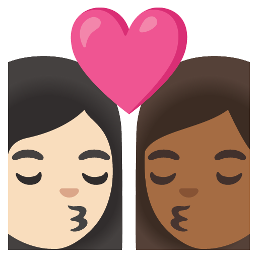 Download the kiss: woman, woman, light skin tone, medium-dark skin tone emoji in PNG and SVG formats below, or copy the emoji to your clipboard.