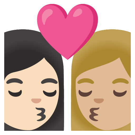 Description from EmojipediaWhat does the kiss: woman, woman, light skin tone, medium-light skin tone emoji mean?