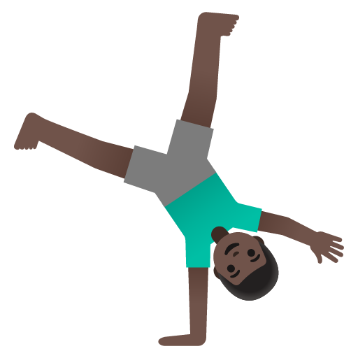 The man cartwheeling: dark skin tone emoji represents physical activity, cheerfulness, and excitement.