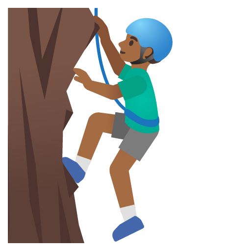 The man climbing: medium-dark skin tone emoji represents someone scaling a mountain or rock face.