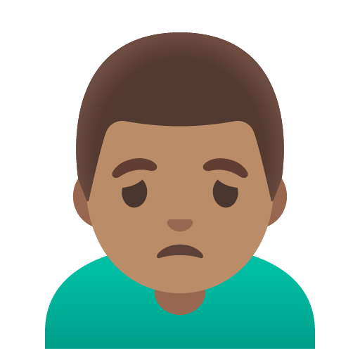 Download the man frowning: medium skin tone emoji in PNG and SVG formats below, or copy the emoji to your clipboard.