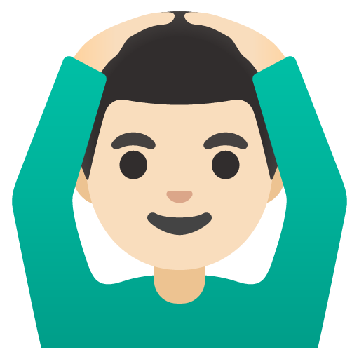 You can add the man gesturing OK: light skin tone emoji to your website in a few ways. The first way is by using the unicode character, the emoji itself. This has the advantage of rendering immediately and it doesn't require any additional network requests. However, emoji characters don't always scale well and they are inconsistent across platforms.