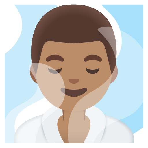 Download the man in steamy room: medium skin tone emoji in PNG and SVG formats below, or copy the emoji to your clipboard.