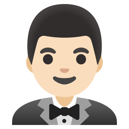 Download the man in tuxedo: light skin tone emoji in PNG and SVG formats below, or copy the emoji to your clipboard.