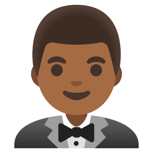 Download the man in tuxedo: medium-dark skin tone emoji in PNG and SVG formats below, or copy the emoji to your clipboard.
