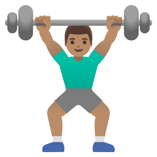 The man lifting weights: medium skin tone emoji represents physical strength and exercise.