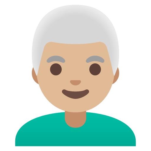 Download the man: medium-light skin tone, white hair emoji