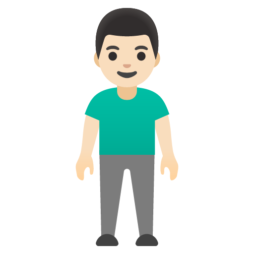 The man standing: light skin tone emoji represents a male character with light skin standing upright.