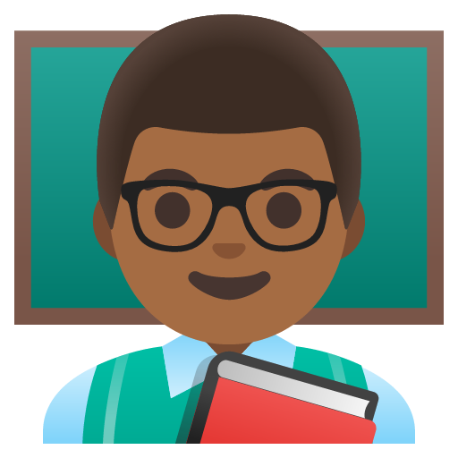 Download the man teacher: medium-dark skin tone emoji in PNG and SVG formats below, or copy the emoji to your clipboard.