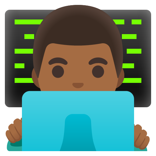 You can add the man technologist: medium-dark skin tone emoji to your website in a few ways. The first way is by using the unicode character, the emoji itself. This has the advantage of rendering immediately and it doesn't require any additional network requests. However, emoji characters don't always scale well and they are inconsistent across platforms.