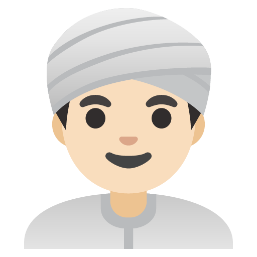 The above meaning was generated by artificial intelligence. It may contain errors or inaccuracies, or be entirely untrue.Copy the man wearing turban: light skin tone emoji