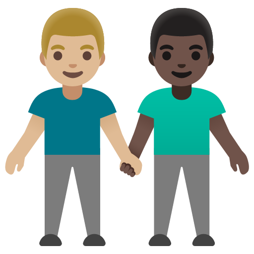 The emoji represents two men with different skin tones holding hands, symbolizing friendship or solidarity between individuals of different backgrounds.