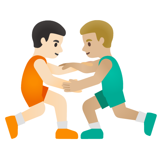 Download the men wrestling: light skin tone, medium-light skin tone emoji in PNG and SVG formats below, or copy the emoji to your clipboard.