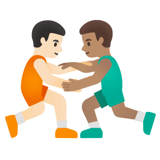 The above meaning was generated by artificial intelligence. It may contain errors or inaccuracies, or be entirely untrue.Copy the men wrestling: light skin tone, medium skin tone emoji