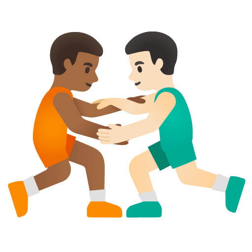 The above meaning was generated by artificial intelligence. It may contain errors or inaccuracies, or be entirely untrue.Copy the men wrestling: medium-dark skin tone, light skin tone emoji
