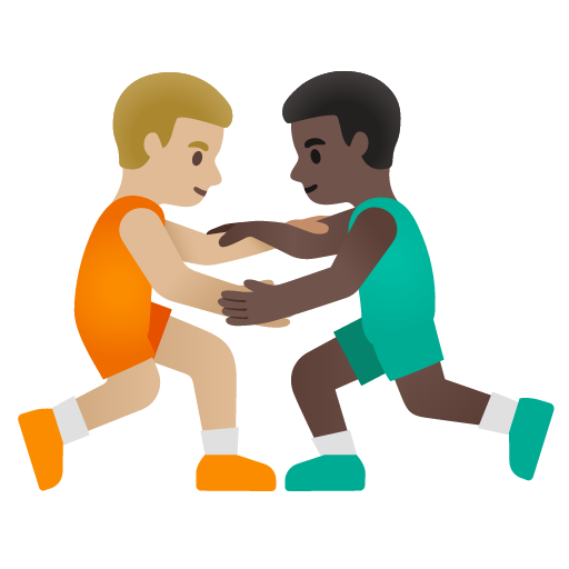 The above meaning was generated by artificial intelligence. It may contain errors or inaccuracies, or be entirely untrue.Copy the men wrestling: medium-light skin tone, dark skin tone emoji