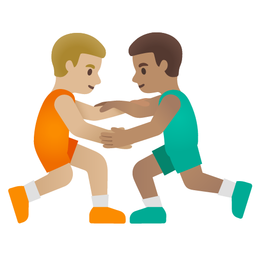 Download the men wrestling: medium-light skin tone, medium skin tone emoji