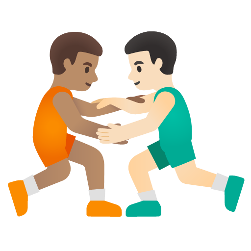 The above meaning was generated by artificial intelligence. It may contain errors or inaccuracies, or be entirely untrue.Copy the men wrestling: medium skin tone, light skin tone emoji