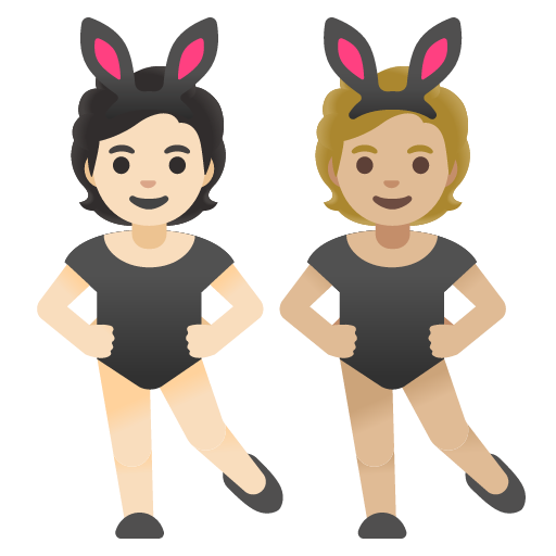 Download the people with bunny ears: light skin tone, medium-light skin tone emoji in PNG and SVG formats below, or copy the emoji to your clipboard.
