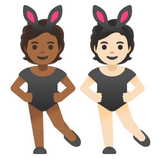 Download the people with bunny ears: medium-dark skin tone, light skin tone emoji in PNG and SVG formats below, or copy the emoji to your clipboard.