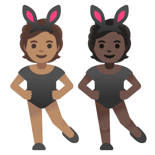 You can add the people with bunny ears: medium skin tone, dark skin tone emoji to your website in a few ways. The first way is by using the unicode character, the emoji itself. This has the advantage of rendering immediately and it doesn't require any additional network requests. However, emoji characters don't always scale well and they are inconsistent across platforms.