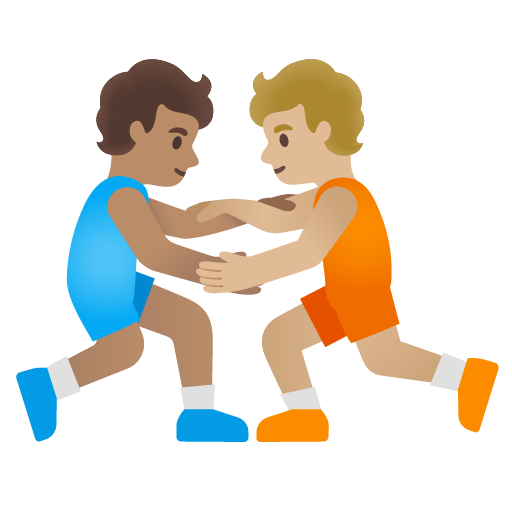 Description from EmojipediaWhat does the people wrestling: medium skin tone, medium-light skin tone emoji mean?