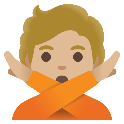 The person gesturing NO: medium-light skin tone emoji indicates a lack of agreement or refusal.
