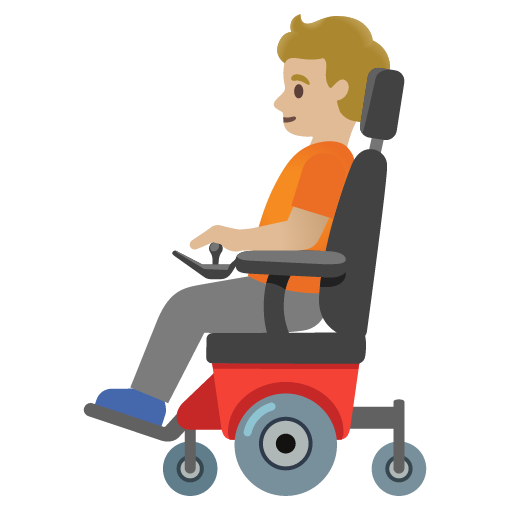 Description from EmojipediaWhat does the person in motorized wheelchair: medium-light skin tone emoji mean?
