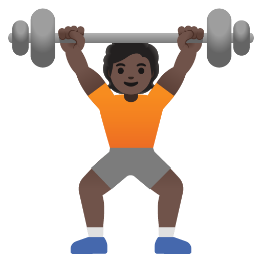 The person lifting weights: dark skin tone emoji is used to represent someone with darker skin tones engaging in weightlifting or exercise.