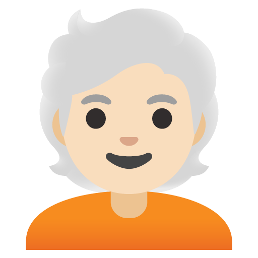 The person emoji with light skin tone and white hair symbolizes an older individual with fair complexion and silver or white hair.