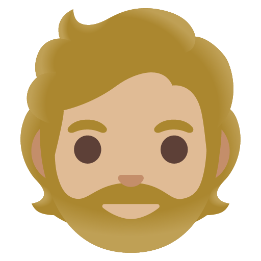 You can add the person: medium-light skin tone, beard emoji to your website in a few ways. The first way is by using the unicode character, the emoji itself. This has the advantage of rendering immediately and it doesn't require any additional network requests. However, emoji characters don't always scale well and they are inconsistent across platforms.