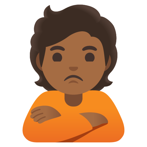 The above meaning was generated by artificial intelligence. It may contain errors or inaccuracies, or be entirely untrue.Copy the person pouting: medium-dark skin tone emoji
