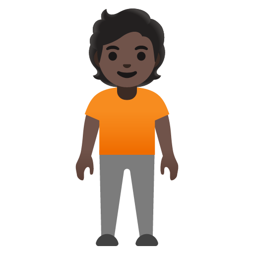 The person standing: dark skin tone emoji represents a person of color or with a darker complexion.